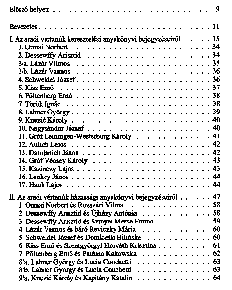 MERÉNYI–METZGER : Az aradi vértanúk anyakönyvi bejegyzései (tartalom)